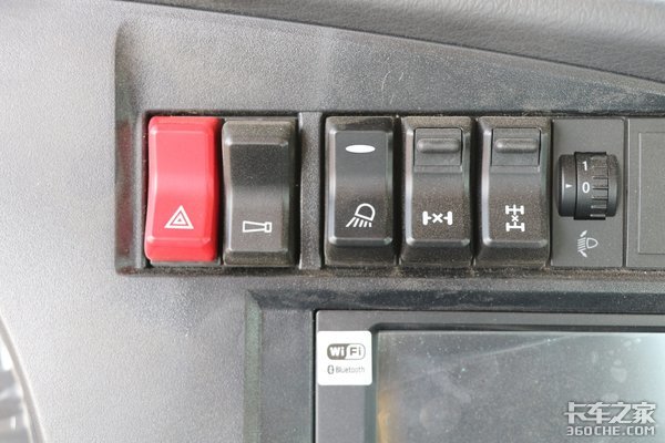 中控上方设有警示灯、差速锁等开关,驾驶员触手可及。