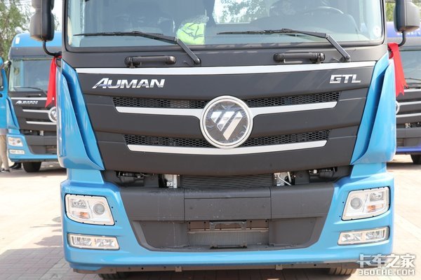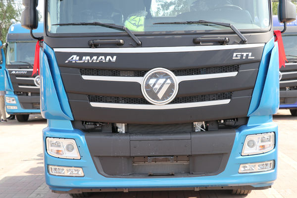 这款欧曼GTL前脸为欧曼经典的家族式设计,采用独特的淡蓝色涂装,天空般湛蓝的观感令人耳目一新。得益于凸地板驾驶室的设计,整车高度更低,通过性更强。前脸中网造型为盾状设计,大面积的黑色材质配合镀铬的装饰条和车标,显得十分亮眼。