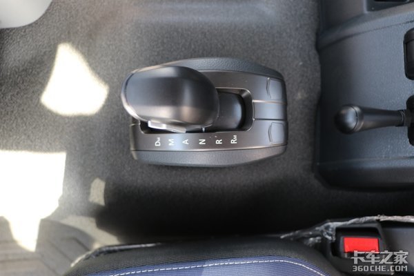 自动挡杆紧挨主驾布置,Dm挡为前行蠕动挡,M挡为手动模式,A挡为前进挡,N挡为空挡,R挡为倒挡,Rm挡为倒行蠕动挡。在蠕动挡时档位保持在最低档不变,适合在接挂、甩挂、停车入库时使用。