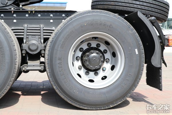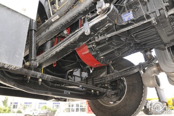 车桥与悬架方面,这款车采用前2后4的少片簧设计,有利于车身减重。配备440后桥,速比2.846,能很好地适应高速公路运输。