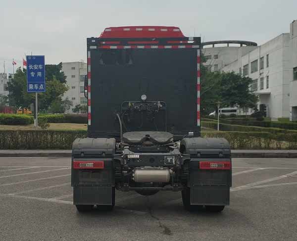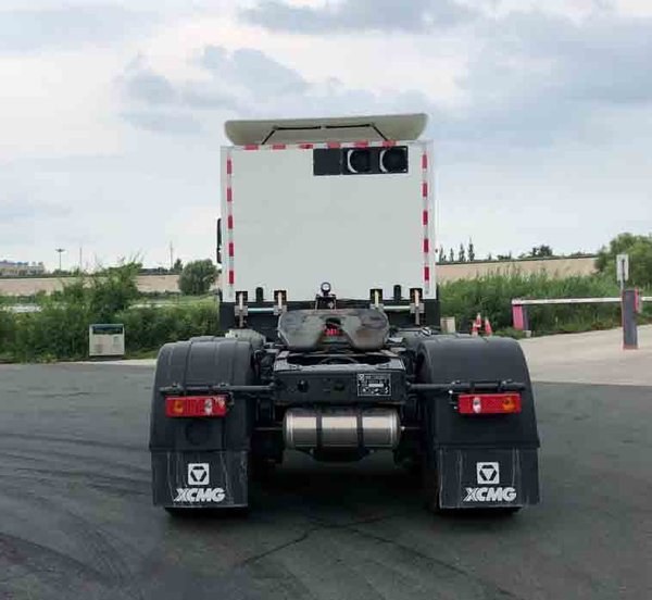 徐工公式的这款纯电动牵引车和前面几款不太一样,是一款换电式纯电动半挂牵引车,既电池可以随时更换,就像乘用车的蔚来一样。这款车自重12.5吨,准牵引车质量36.37吨,采用前9后12片钢板悬架。