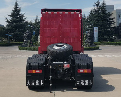 4x2的车型比较有意思,全部都是钢板悬架,最少的是前2后7+10,最多的有前9后7+10。从板簧结构上来看,这款车应该是给港口运输使用的,整车自重在8.32吨,准牵引质量31.5吨,给港口使用搓搓有余。
