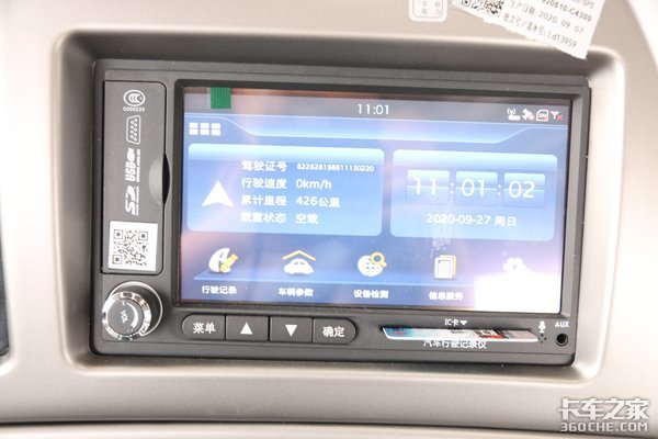 随车标配有带行车记录仪的电容屏,可以输入车辆的具体参数,这样使用车载导航时,就可以规避一些特殊路段,例如限高,提高车辆的运转效率,还带有车辆实时状态以及设备检测等功能。