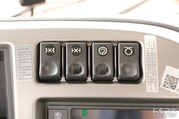 控台各按键标识非常清晰,在相应的按键旁边,细心的贴有使用注意事项标签,例如在差速锁旁边,就贴有差速锁使用注意事项,尽可能的规范驾驶员用车习惯,确保汽车零件的使用寿命。