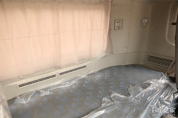 双卧铺设计,柔软度适中,两边都有网格状的储物空间,各车窗处以及床铺和驾驶衔接的地方,也配有窗帘,可以使随车休息人员有一个相对比较隐私的空间,还可以提高休息人员的睡眠质量,毕竟睡觉时眼睛突然收到强光刺激,那可真是一件不愉快的事情。