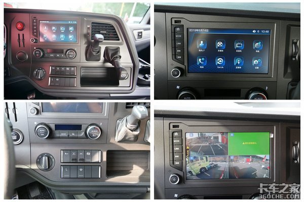 这款车的中控台排布非常规整,可以说是强迫症的福音了。8寸北斗兼容触摸式车载终端看起来非常高级,实拍车装配的四路影响摄像头可以在多媒体大屏上实时显示,在装卸货物或是停车时非常的实用,同时,多媒体集成了车辆管理、一键救援、自动空调、手机互联、无线WIFI、车载娱乐系统等智能化配置,是J7的卖点之一。,在多媒体的下方是空调控制按钮,空调的冷暖可进行自动调节。在中控台的最下方是挡位调节旋钮以及喇叭等功能的按钮。