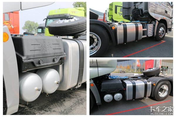 这款车采用双油箱的形式,容量加起来有1000L,油箱采用铝合金的壳体,比较耐磨,并且质量轻,这款车的储气罐同样采用铝合金材质。