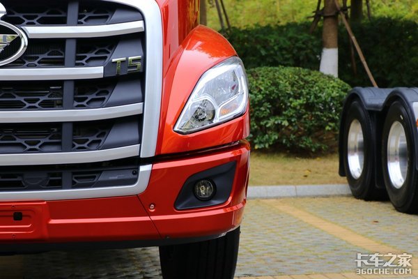 长头车的底盘长度肯定会比平头车要长出不少,T5的轴距为3950+1350mm,比标准牵引车3300-3500mm的轴距提高了半米多的长度。虽然转弯半径提高了,但使得T5这款车拥有非常丰富的底盘空间。