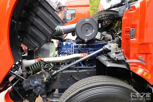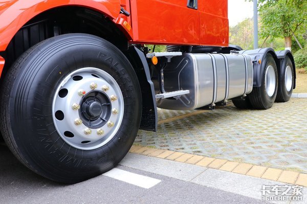 底盘左侧就搭载了800L的油箱。400马力加上轻量化设计,如此的油箱其实即便是长途运输也能完全胜任。
