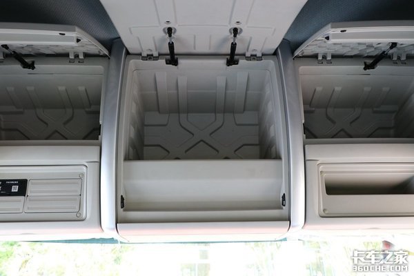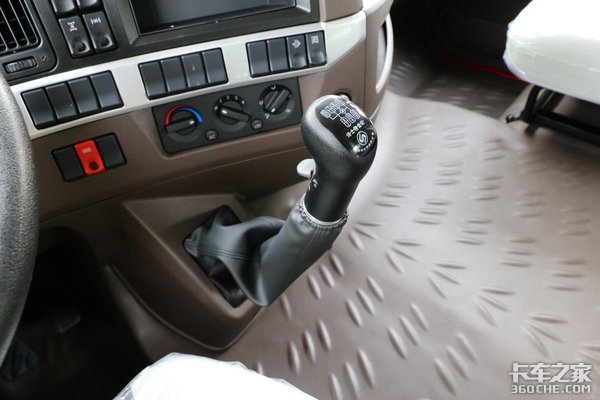 实拍车型的变速挡杆集成到了中控台下方。给驾驶位和中间区域留出了一小块过道,普通的卡车变速器都是在座椅右边,这种设计避免变速器档杆阻挡驾驶员进入卧铺区域。