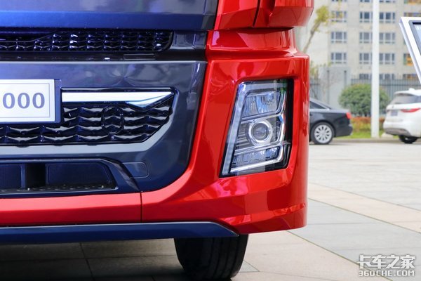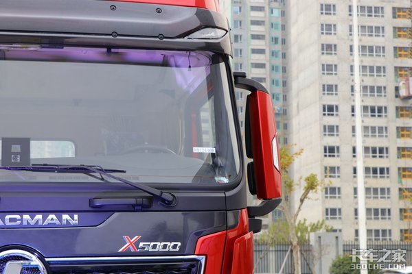 德龙X5000采用与德龙X3000相似的驾驶室,继续沿用德龙经典的家族式前脸,红色的涂装配合上大面积的熏黑中网以及镀铬的银色车标和装饰条,整体显得精致大方。前脸两边的导流槽,配合上导流罩,能在行车时有效降低风阻,提高燃油经济性。