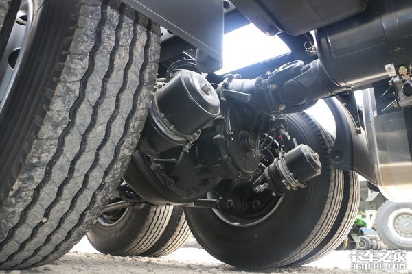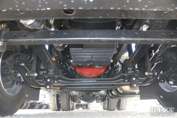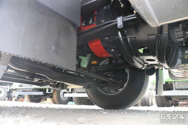 底盘方面,该车采用前2后4少片簧悬架结构,配备440后桥,在保证承载力的同时,还兼顾到了轻量化,后桥速比为2.846。这种直接挡配小速比的经典组合,带来了更高的传动效率,而且在燃油经济性方面也会更有优势,更加适合高速、平原等运输工况。