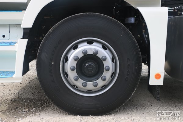 该车配备玲珑品牌轮胎,规格为12R22.5。根据轮胎规格、后桥速比2.846、变速箱最高挡速比为1时,通过卡车之家车速计算器可算出,车辆在1100-1200转速时,时速为76-83公里/小时,适合高效公路运输。