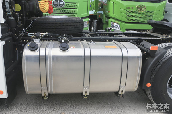 这款欧曼GTL穿越版车型最大的特点就是配备了铝合金材质的双腔油箱,并带有加热功能,避免在寒区出现冻油的情况。此外,我们可以在主油箱加注高标号柴油,副油箱加注-20号、-35号等低标号柴油。低温环境下,切换低标号的副油箱,完成车辆启动,当车辆正常行驶后,又可以再切回高标号主油箱,同归这样切换使用,以实现更佳的经济性。