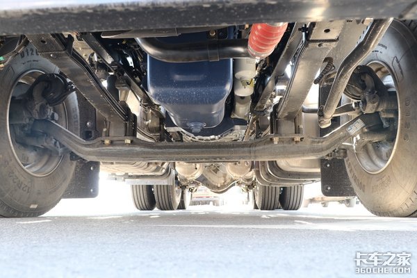 底盘方面,采用汉德5.5T的曼技术免维护前桥和11.5T的曼技术单级后桥。采用前2后3的少片簧设计,符合市场上悬架轻量化的趋势。