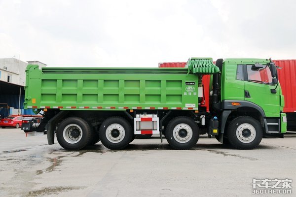 那么,8X2车型到底有什么好处呢?显然,相比6X4自卸车来说,8X2车型后桥多一根轴,它的准载吨位可以更高,并且,整车的承载潜力更强。另外,相比8X4车型来说,这款车的自重更轻、价格更低,且转弯半径更小,车身更加灵活,更适用于道路狭窄的城乡、城区一类的运输市场。