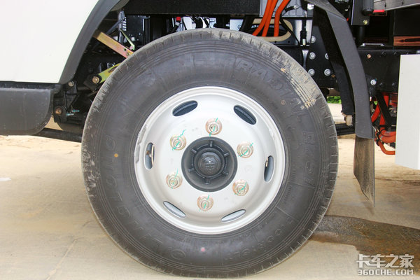 实车搭载6条型号为R751的玲珑全钢子午胎,规格为7.00R16LT,这款轮胎有较高的弹性和耐磨性,并有良好的附着力和散热性能,并且质量更轻,对车身的轻量化也起到了一定的作用。