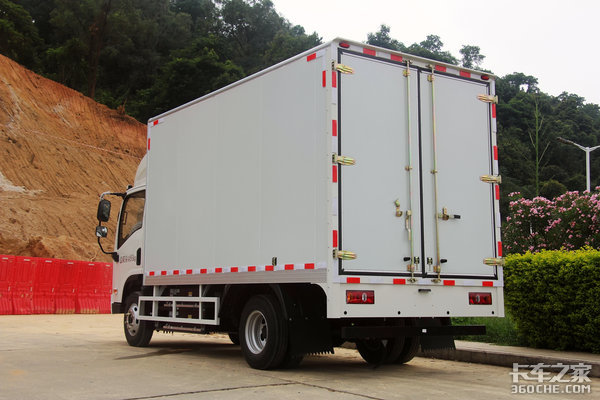 实车搭载厢式货厢,货厢尺寸为4100x2100/2210x1980/2100mm,宽货厢能够保证双排托盘的摆放,同时1980mm高度的货厢能够将车辆高度降低到3米以下,保障车辆的通行,能够满足不同用户的选择。