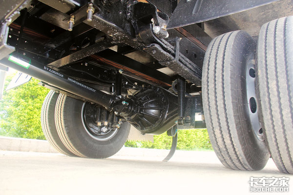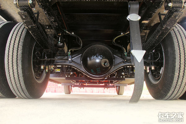 匹配一条速比为6.142的后桥,能够更好地匹配高转速电机,并且这样的速比对于一台自重达3吨,总质量4.5吨的轻卡来说,能够保证更好的重载启动能力。
