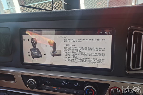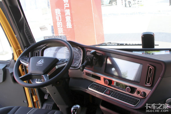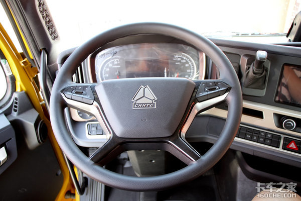 这款豪沃TH7的AMT变速箱采用了最新的换挡手柄,更符合人机工程学设计,挡杆与主驾座椅的扶手集成在了一起,可以进行上下和前后调节,无论怎么移动座椅位置,都能有舒适的操作体验。