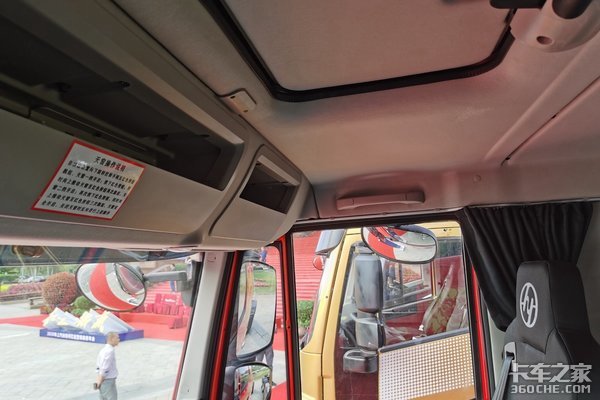 车顶配备了多个半封闭式的储物箱,便于放一些票据和日常使用的物品等。顶部配备了一个可开启的换气窗,加速驾驶室的空气流通。