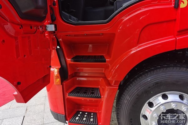 黑红色搭配元素甚至体现到了蹬车梯上,有着较独特的视觉效果,防滑耐磨的材质让驾驶员有不错的脚感,细节之处做得不错。