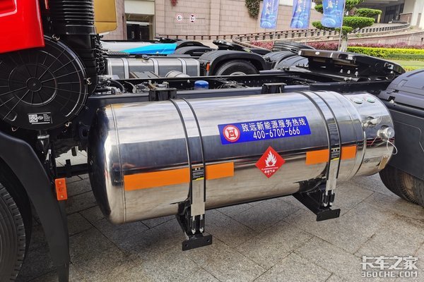 该车采用侧置燃气罐的布局,保证了车架的一体性设计。气罐容积为450L,拥有较长的续航能力,满足常规运力没有问题。