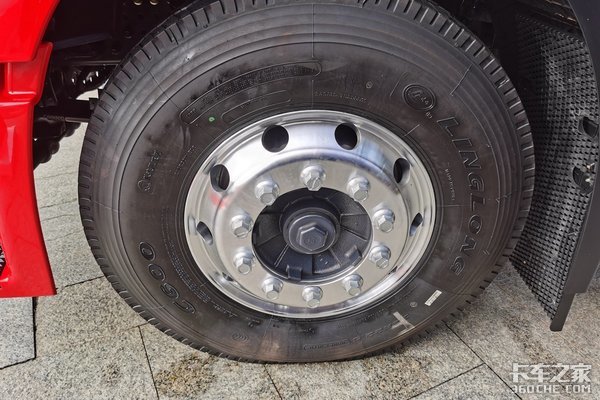 配置的轮胎规格为12R22.5 18R,品牌则是常见的玲珑C600系列,适用于行驶在高等级公路上的货运车,也是表明了这款车定位的运输场景主要在高速上。