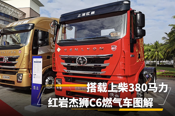 杰狮C6搭载的是上柴SC10ET380Q6发动机,10.42L排量,直列6缸,使用电控预混合、TWC技术,符合国六排放标准。最大380匹马力,最高1200转时能爆发出1750牛米的扭矩。