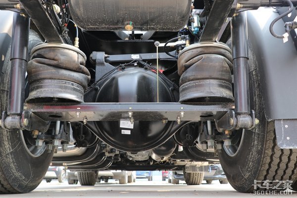 车桥和悬架方面,后桥采用11.5T的德纳车桥,后桥速比为3.36。采用气囊悬架,可以根据需要调整气囊高度。