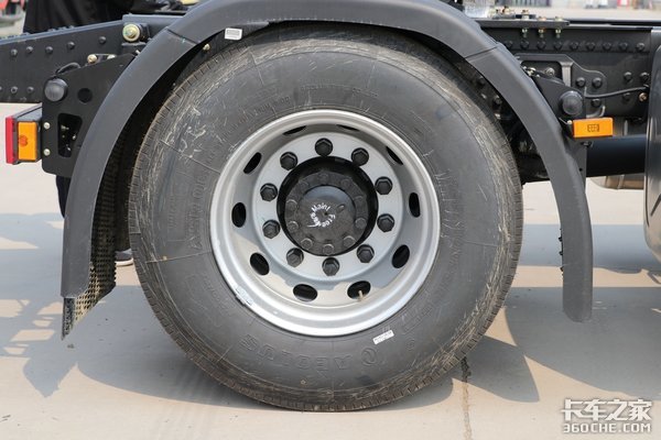 轮胎方面,装配的是规格为295/80R22.5的风神牌真空胎。轮端采用50万公里免维护的康迈油润滑轮端,这也是主流品牌高端车型的标准配置。