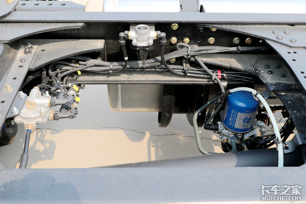 整车配备有ABS防抱死系统,因为车型定位并不是特别高端,所以没有配备EBS和液力缓速器。空气处理单元采用的是东科克诺尔的克诺尔蓝罐干燥罐及阀门类配件。