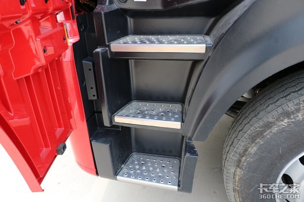 登车踏板选用不锈钢材质,采用打孔防滑设计,能减少驾驶员上车时将泥土带入车内的情况。
