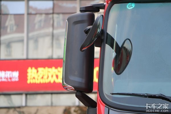 该车采用高端重卡常用的一体式后视镜设计,并在后视镜外侧增加L型镀铬饰条点缀,提升装置的整体质感和档次。并且配备后视镜加热功能,能在极端恶劣天气情况下为驾驶员尽可能地提供更清晰的视野。