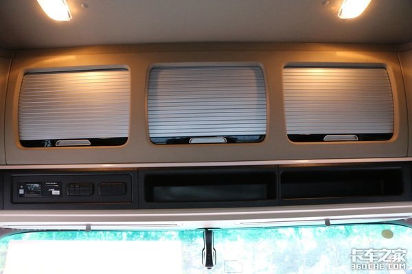 除此之外,风挡玻璃车顶上配备三个大空间储物箱,并使用非常少见的卷帘式开门方式,不占空间的同时也非常美观。