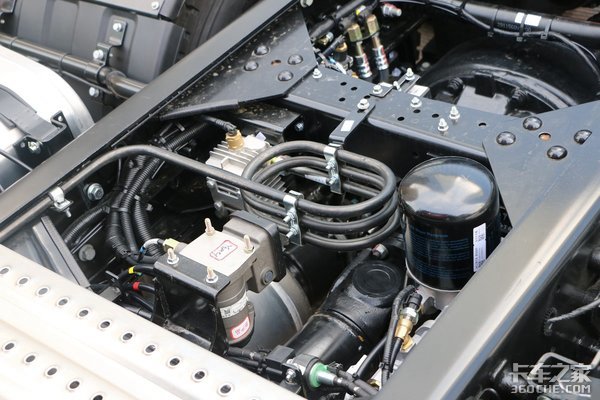 该车的车架集成度较高,空间使用规划设计得恰到好处。线路虽然多,但整体布局规整有序。另外空气处理装置和整车气路阀门等重要部件都使用了大厂配件,稳定性方面能够保障。