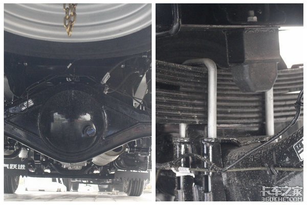 这款车的前桥采用2.5吨级前桥,5吨级后桥,后桥速比4.375。采用前8后6+6少片簧的悬挂形式,在保证承载能力的同时可有效降低车身自重。