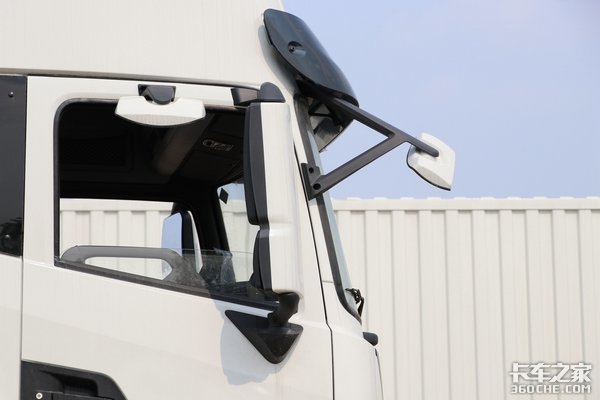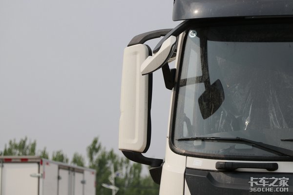 该车采用一体式后视镜设计,并且在支撑杆的造型上非常有设计感,更趋于高端重卡的配置水平。并且采用车身同色的米白色,整体效果非常耐看。