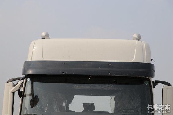 车辆顶部两侧配备气喇叭,以及外凸式示廓灯,在提醒其他交通参与者上面,在声音和灯光上都做了较大的努力,希望能在行车安全性方面有很好的作用。同时配备车顶黑色的遮阳罩,在南方阳光强烈的地方行驶也能抵挡一些紫外线的照射。
