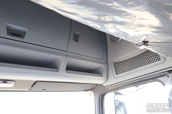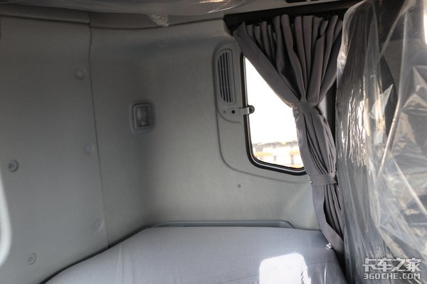 座椅背后的卧铺区域配置也比较齐全,有独立的照明灯光、空调出风口、换气窗以及遮光窗帘,整体设计都非常人性化,让驾驶员休息得更舒适。