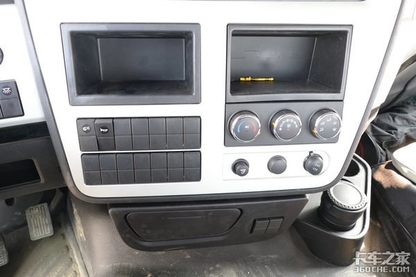 另外中控区域还设置了两个开放式储物盒,用来放手机、单据等物品非常方便。下方是手动空调和点烟器、24V的电源接口,使用起来也足够便利。