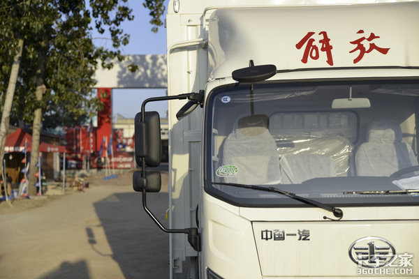 原厂导流罩上的“解放”可以说是深入人心,极具辨识度。大面积前挡风玻璃的设计也驾驶员带来了更加宽敞的行车视野,同时A柱倾角幅度更小,有利于观察到四周情况。