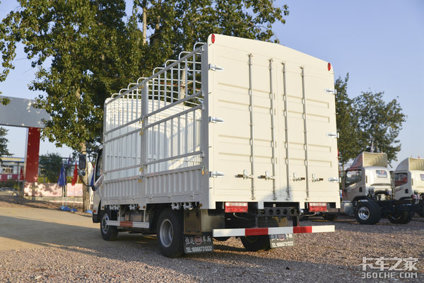 该车轴距为3300mm,配备仓栅式货厢,尺寸为4160x2200mm,能够满足农副产品运输、绿通以及城市配送、日用百货等等。此外,还提供了栏板、厢式等不同尺寸的上装,卡友可根据使用需求来进行选择。