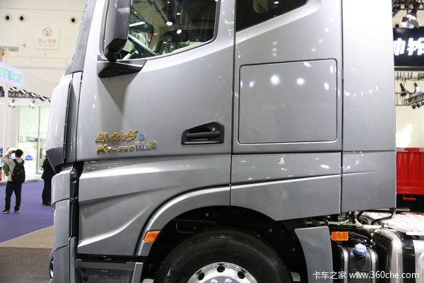 前格栅采用盾形设计,贴近欧洲卡车的设计元素。阶梯式的中网搭配蜂窝孔状的进气孔,整体层次分明。前脸两侧的导流槽能引导气流避免泥水附着在门把手处,从而避免驾驶员打开车门时弄脏双手,同时配合驾驶室后方的导流罩能在车辆高速行驶时大辐降低风阻。