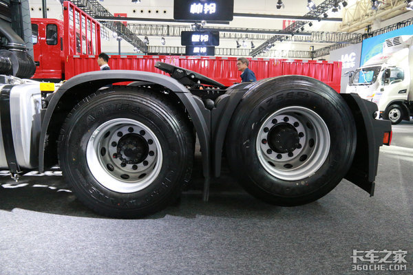 第三根桥为提升桥,重载时将车桥放下空载时提起,既能降低油耗,也能减少轮胎磨损,使用成本进一步降低。
