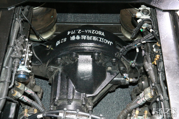 后桥方面,这款格尔发K7采用江淮跨越系列专用后桥,同样采用长换油技术,进一步保证了车辆更高的出勤率和更低的维护成本。后桥速比为2.714,大马力和小速比的搭配,更适合长途干线运输,保证时效性的同时也能降低油耗。