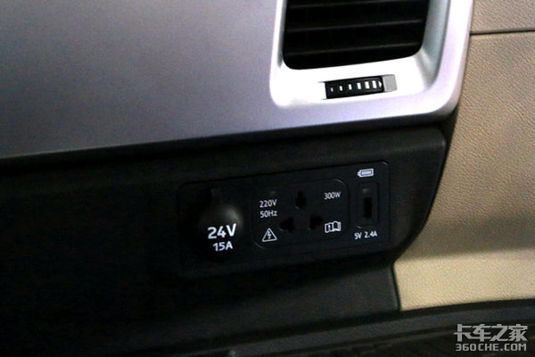 副驾驶区域,配备了24V电源、220V电源及USB充电接口,方便车主随时为手机充电。