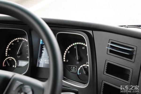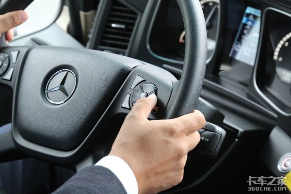 方向盘的造型和用料上也有一些小小的变化,相对于MP4,最新Actros方向盘造型更圆润,而且材料上也是采用了一些搪塑的。方向盘整体握上去的手感要比MP4好一些,如果是对方向盘要求更高,可以选配真皮包裹或者是镀铬。