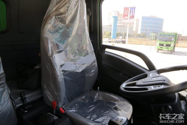 主驾驶椅使用气囊减震装置,座椅轨道前后均可滑行100mm,靠背调节角度为-20度到65度,减震器行程可达40mm,减震效果比较好,这种配置在自卸车领域还是比较少见的。而且座椅的设计也比较符合人机工学理念。