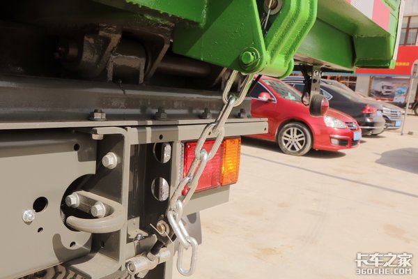 货箱举升的最大角度约在45度,可以通过驾驶室的手控阀来控制液压油缸的行程,达到理想化的卸货量。如果需要在货箱举升时对底盘进行检修,一定要打开安全支撑,此装置在液压油缸左边。